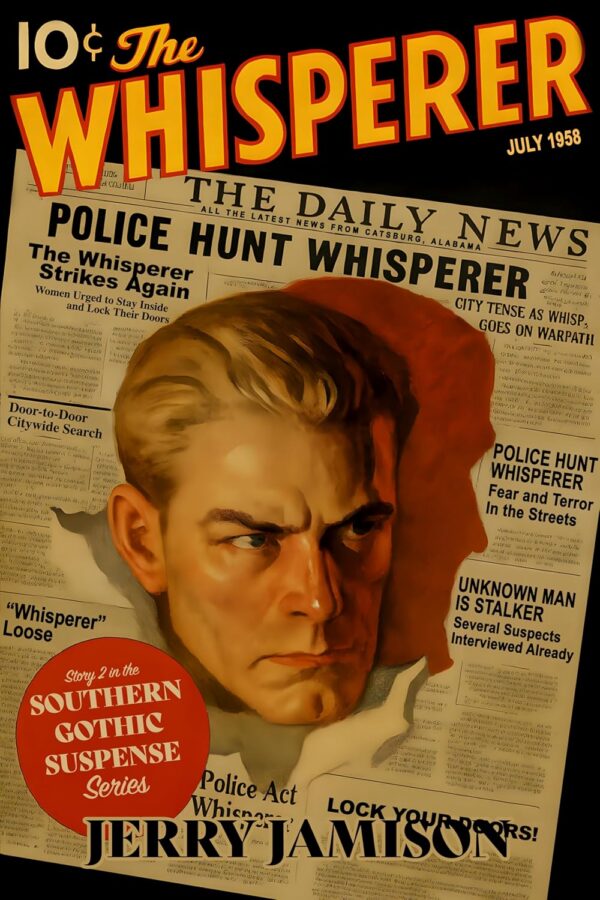 The Whisperer is a Southern Gothic psychological thriller steeped in humidity, paranoia, and Hitchcockian dread—a story of mob justice, misdirection, and the terrifying truth that evil doesn’t always shout.